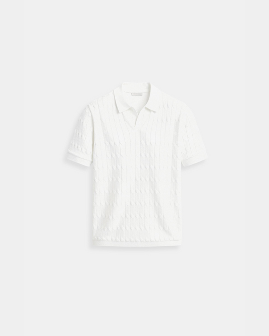 Old Money Luxe gebreide poloshirt - wit